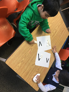 Students made the letter V with play dough:Recess/ Lunch